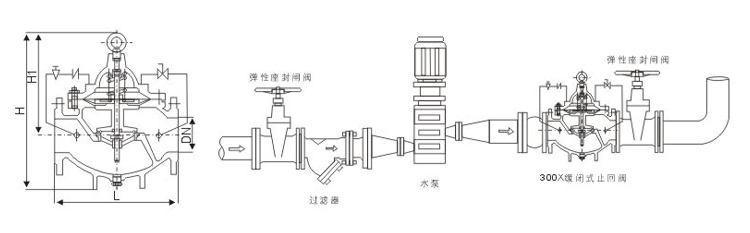 300X緩閉式止回閥由主閥、單向閥、針閥、球閥、微形過(guò)濾器和壓力表組成水力控制接管系統(tǒng)。利用水力自動(dòng)操作,可使主閥得到的開(kāi)啟或關(guān)閉速度。選用300X緩閉止回閥可以防止水鍾水擊的產(chǎn)生,以達(dá)到緩閉消聲的效果。該水力控制閥產(chǎn)品利用水力自力控制,不需要其它裝置和能源,保養(yǎng)簡(jiǎn)便,開(kāi)啟及緩閉平穩(wěn)。300X緩閉止回閥系列閥門產(chǎn)品廣泛用于高層建筑、生活區(qū)等供水管網(wǎng)系統(tǒng)及城市供水工程。