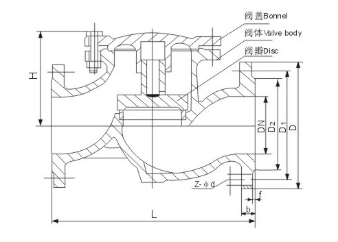 H41W/H國標升降式止回閥主要外形尺寸